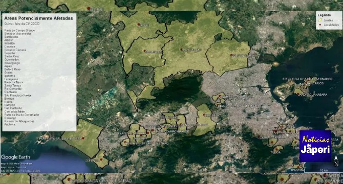 Zona Oeste: parte de Campo Grande, Senador Vasconcelos, Santíssimo, Jabour, Inhoaíba, Cosmos, Senador Camará, Sepetiba, Santa Cruz, Realengo.
